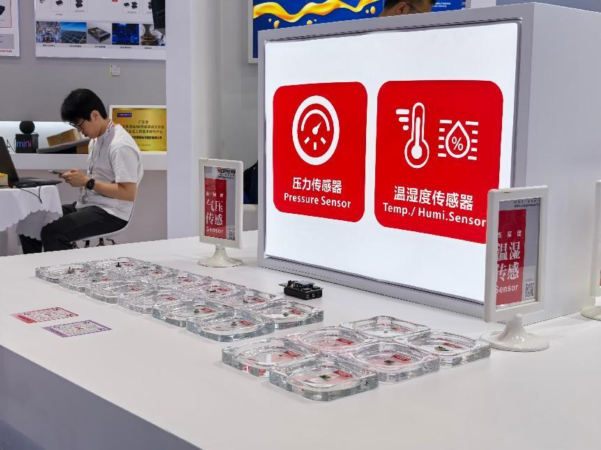 在传感器产品方面,银河galaxy微全面展示了其自主研发的、具备超高测量精度的、低功耗与宽量程的压力传感器和温湿度传感器。这些产品不仅能精准地输出环境监测数据,还拥有出色的长期稳定性,可广泛应用在气象站设备、工业压力/温度传感器系统与白色家电等领域。
