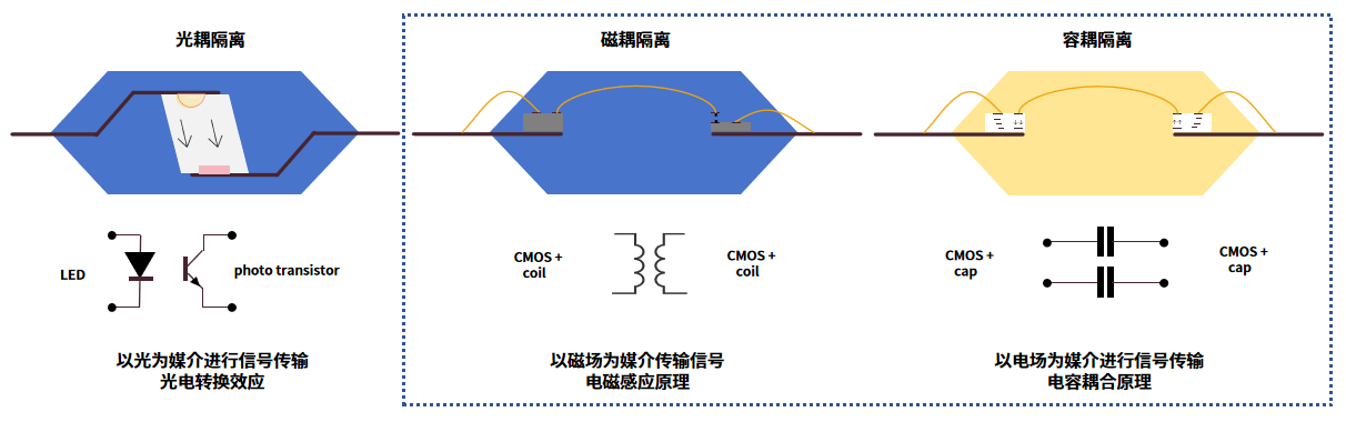 相比传统光耦隔离芯片,数字隔离芯片是新一代隔离器的代表,它不仅尺寸更小、速率更快(150Mbps)、隔离电压更高(>5kVrms)、共模瞬变抗扰度(CMTI)更高(>200kV/μs)、功耗更低与适用温度范围更广,且还拥有着更高的可靠性和更长的使用寿命。