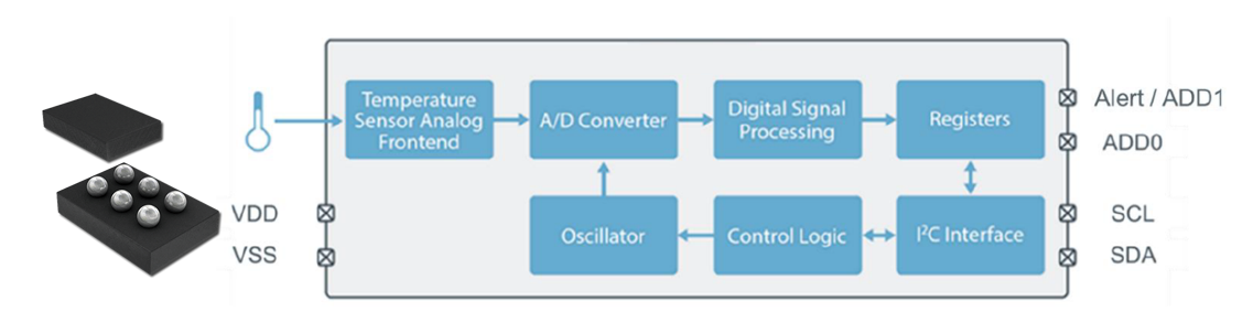 数字温度传感器T09可通过I²C总线接口直接与数字电路连接,其不仅能简化温度监测系统中的电路设计,降低系统成本,还能提升系统整体的稳定性和可靠性。